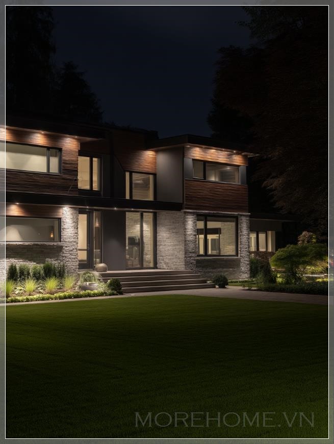 Khi bạn đứng ngắm nhìn ngôi nhà này vào buổi tối, bạn sẽ cảm nhận được sự sang trọng không phô trương. Mỗi ánh đèn được đặt ở vị trí chính xác, tạo ra hiệu ứng thị giác tuyệt vời mà không làm mất đi vẻ tự nhiên của cảnh quan xung quanh. Đó là sự kết hợp hoàn hảo giữa công nghệ hiện đại và nghệ thuật thiết kế.