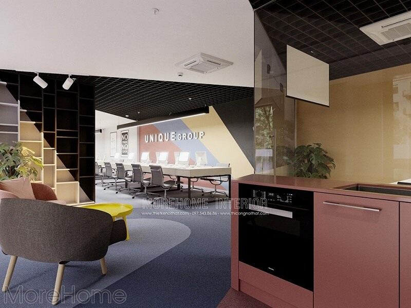 Thiết kế văn phòng với các bộ phân được phân bố không gian làm việc riêng nhưng vẫn gắn kết với nhau trong một tổng thể qua vách kính cường lực