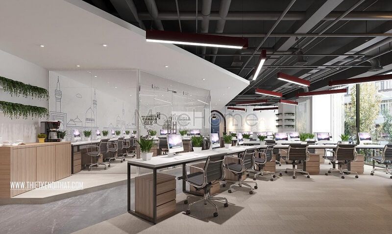 Thiết kế văn phòng xanh ấn tượng theo phong cách hiện đại.
