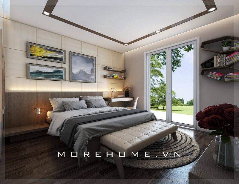 Giường ngủ biệt thự cao cấp được thiết kế theo phong cách hiện đại, đơn giản, tập trung vào công năng sử dụng tạo sự thoải mái nhất cho giấc chủ của gia chủ