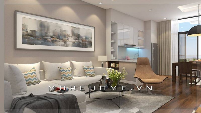 Chọn một bộ sofa hiện đại với kiểu dáng văng ba tiện lợi, có phần vỏ bọc nhung êm ái, mềm mại là lựa chọn hoàn hảo cho phòng khách chung cư.