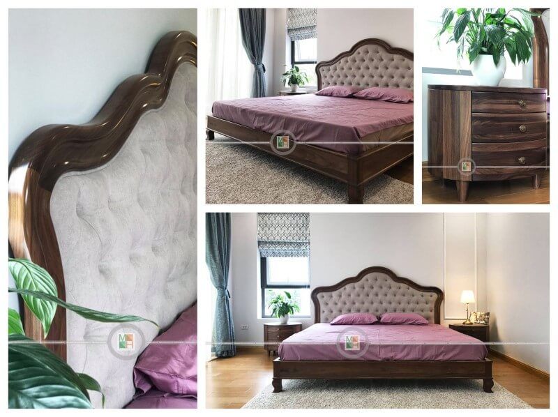 Việc thi công nội thất phòng ngủ trong biệt thự Ecopark được thực hiện với phong cách sang trọng, bao gồm một mẫu giường gỗ óc chó tân cổ điển cao cấp.